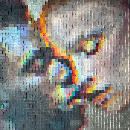 Working mainly with acrylic on canvas, Spiller developed a distinctive pixel-like texture that blends order and emotion. Her art explores themes of perception, resilience, and humanity, often shaped by personal and historical moments. In works such as Tanja (2024), painted during the war in Ukraine, she reflects both loss and enduring hope.